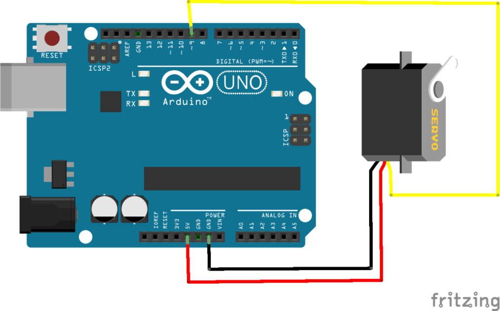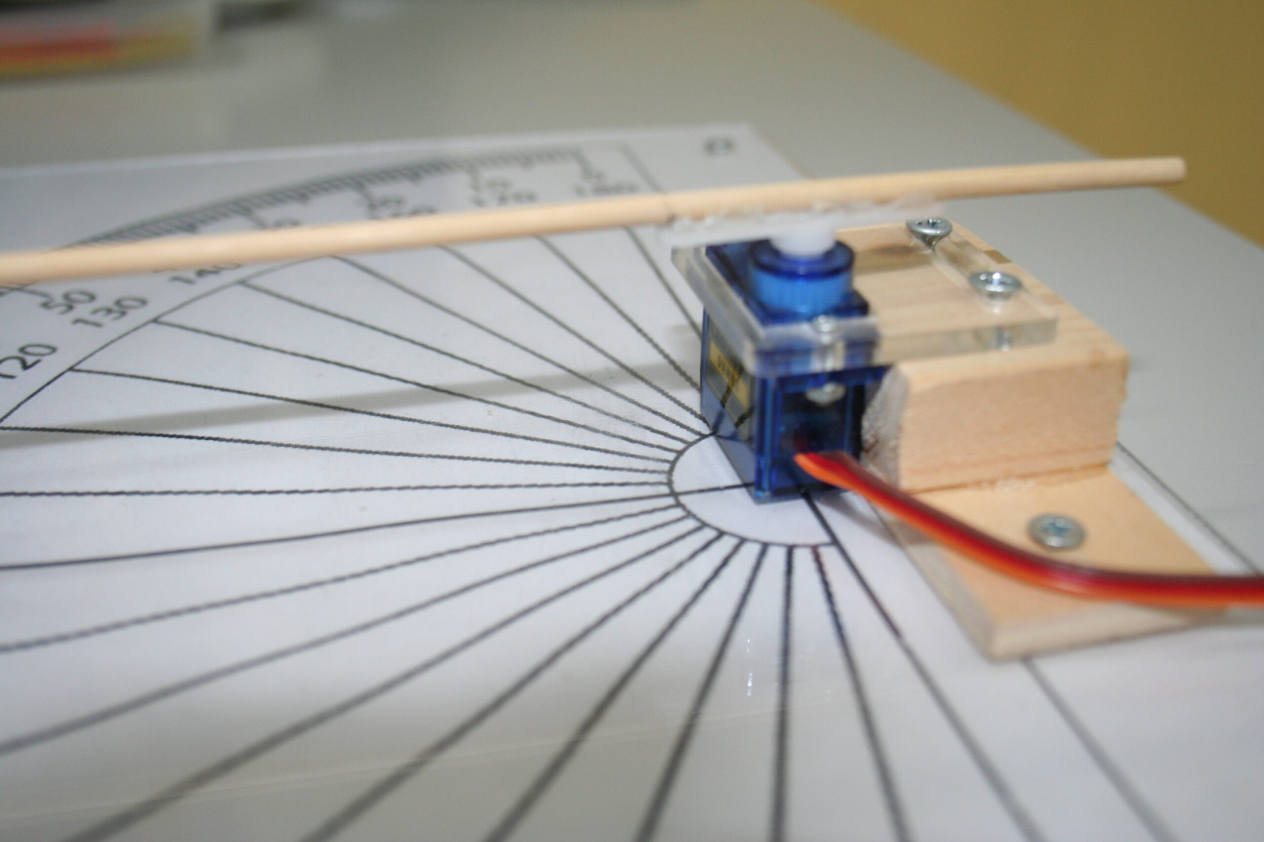 Un servomotore, opportunamente collegato alla scheda Arduino, è stato fissato ad una struttura lignea, sul cui fondo è stato posizionato un goniometro in carta. È stato poi avviato, sfruttando la piattaforma “Blynk”, un server remoto che, attraverso uno slider, permetterebbe di controllare il movimento del motore da remoto.