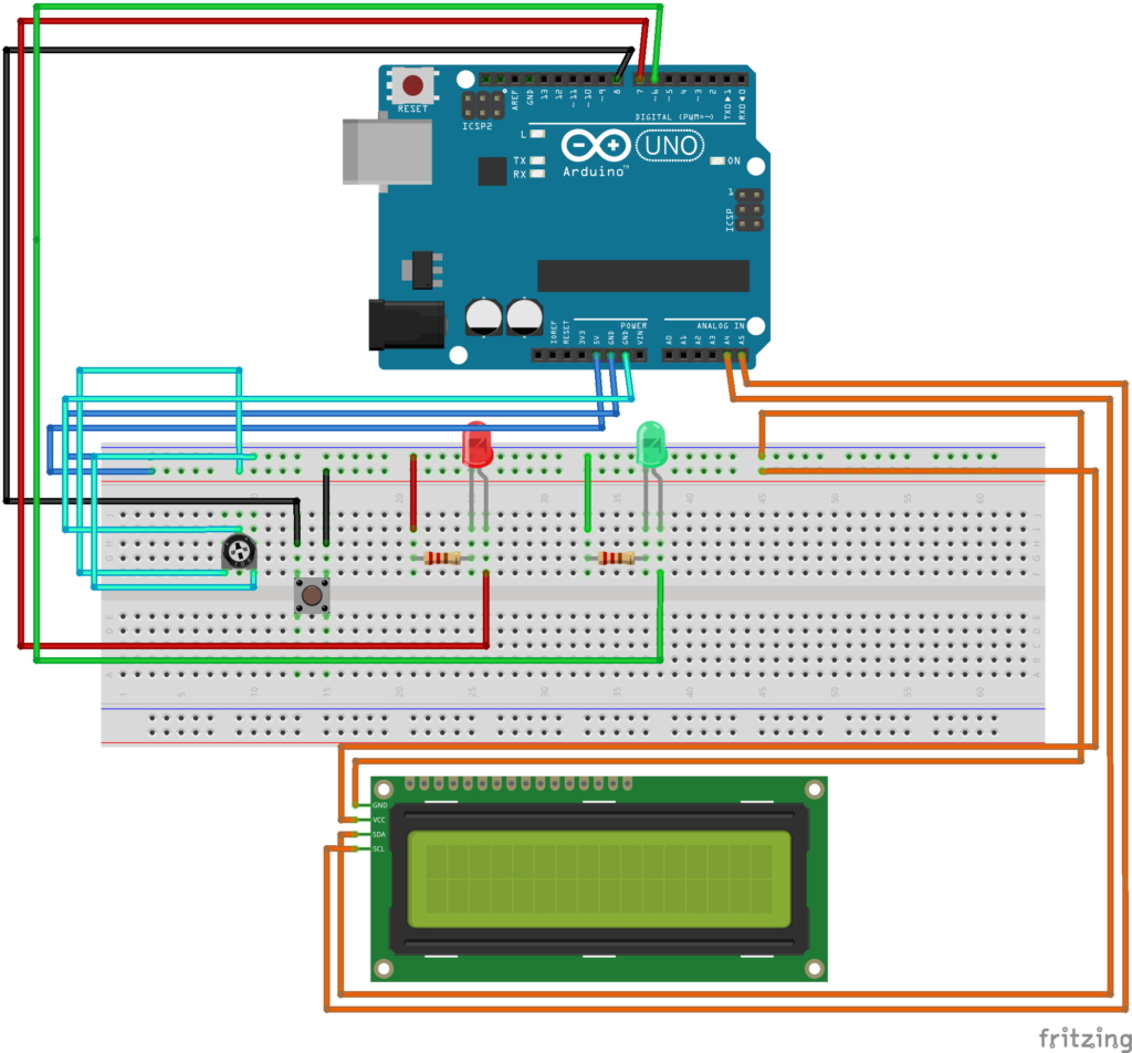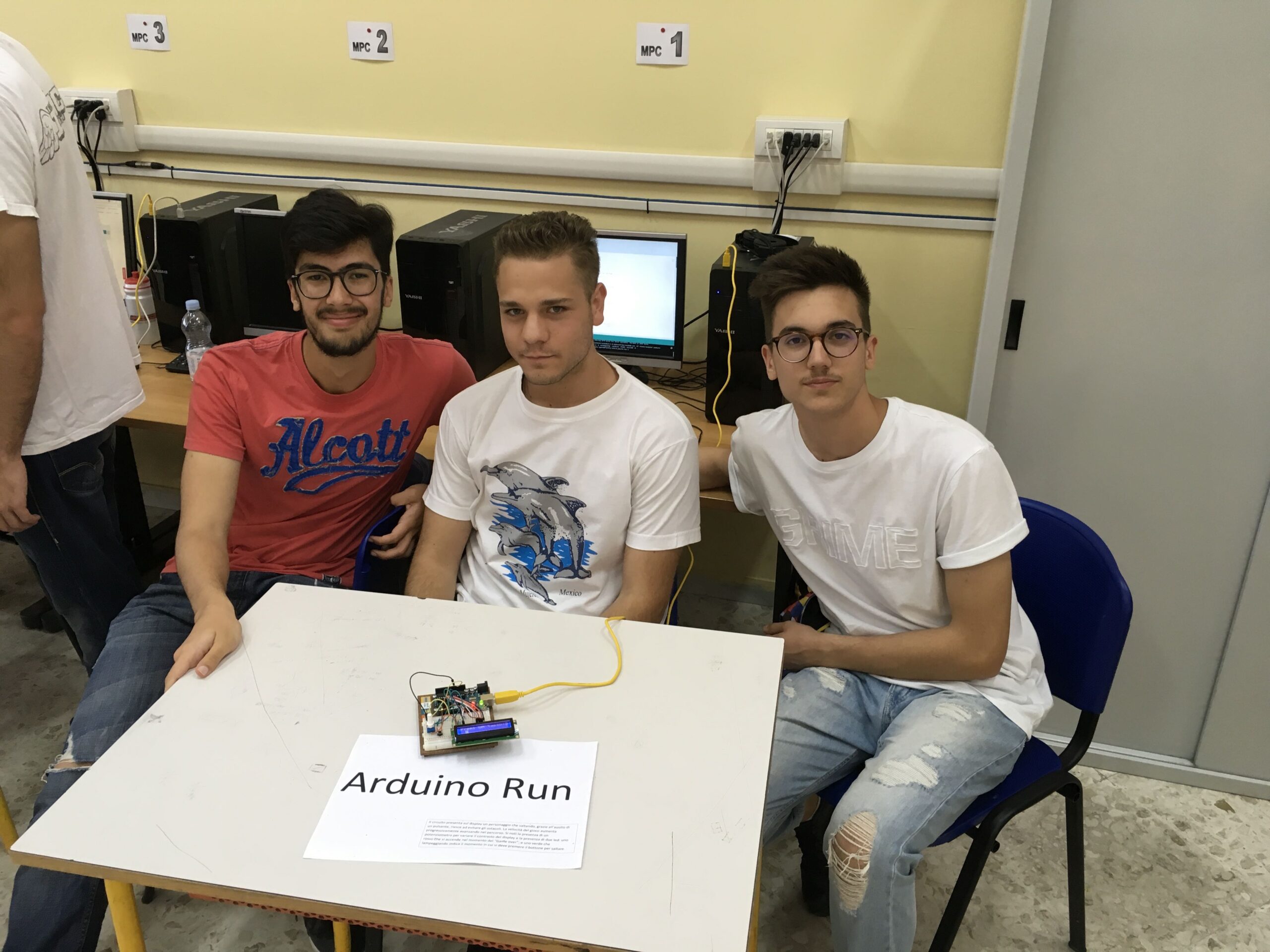 Il circuito è dotato di un display, sul quale viene visualizzato un personaggio che, saltando grazie all’ausilio di un pulsante, riesce ad evitare gli ostacoli. La velocità del gioco aumenta progressivamente, avanzando nel percorso. Si noti la presenza di un potenziometro, utile per variare il contrasto del display, e di due led: uno rosso, che si illumina nel momento del “Game Over”, ed uno verde, che lampeggia indicando il momento in cui è necessario premere il bottone per saltare.