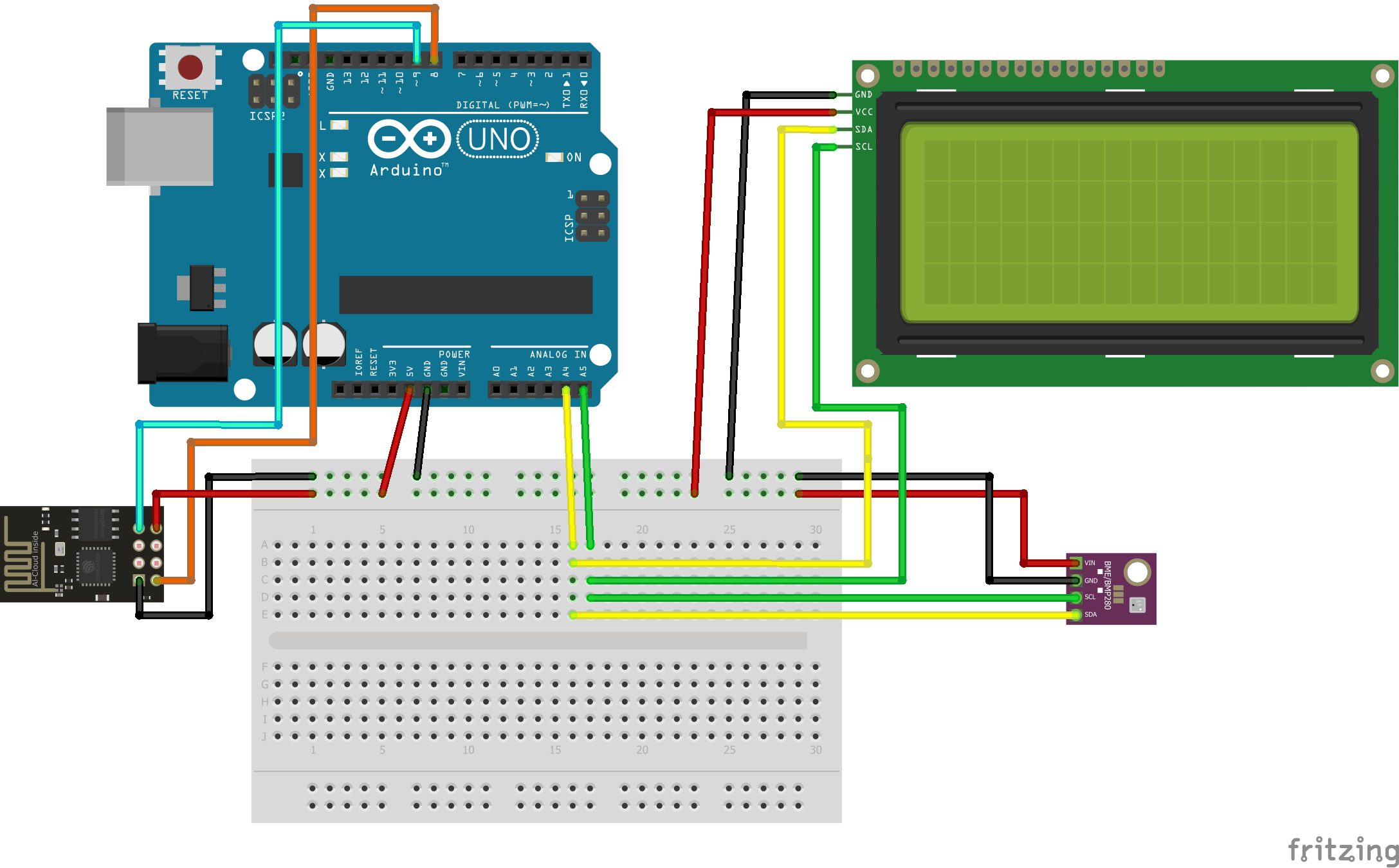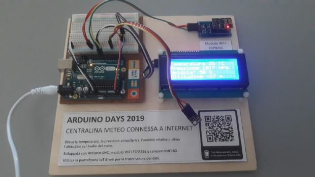Il dispositivo realizza una semplice centralina meteo che rileva la temperatura, l’umidità relativa e la pressione atmosferica grazie al sensore BME280 sviluppato da Bosch. Inoltre viene stimata anche l’altitudine, utilizzando il valore medio della pressione atmosferica a livello del mare. I dati vengono visualizzati su di un display LCD e resi disponibili per la lettura via internet attraverso la piattaforma IoT Blynk, tra le più rappresentative nel campo dell’Internet delle cose.