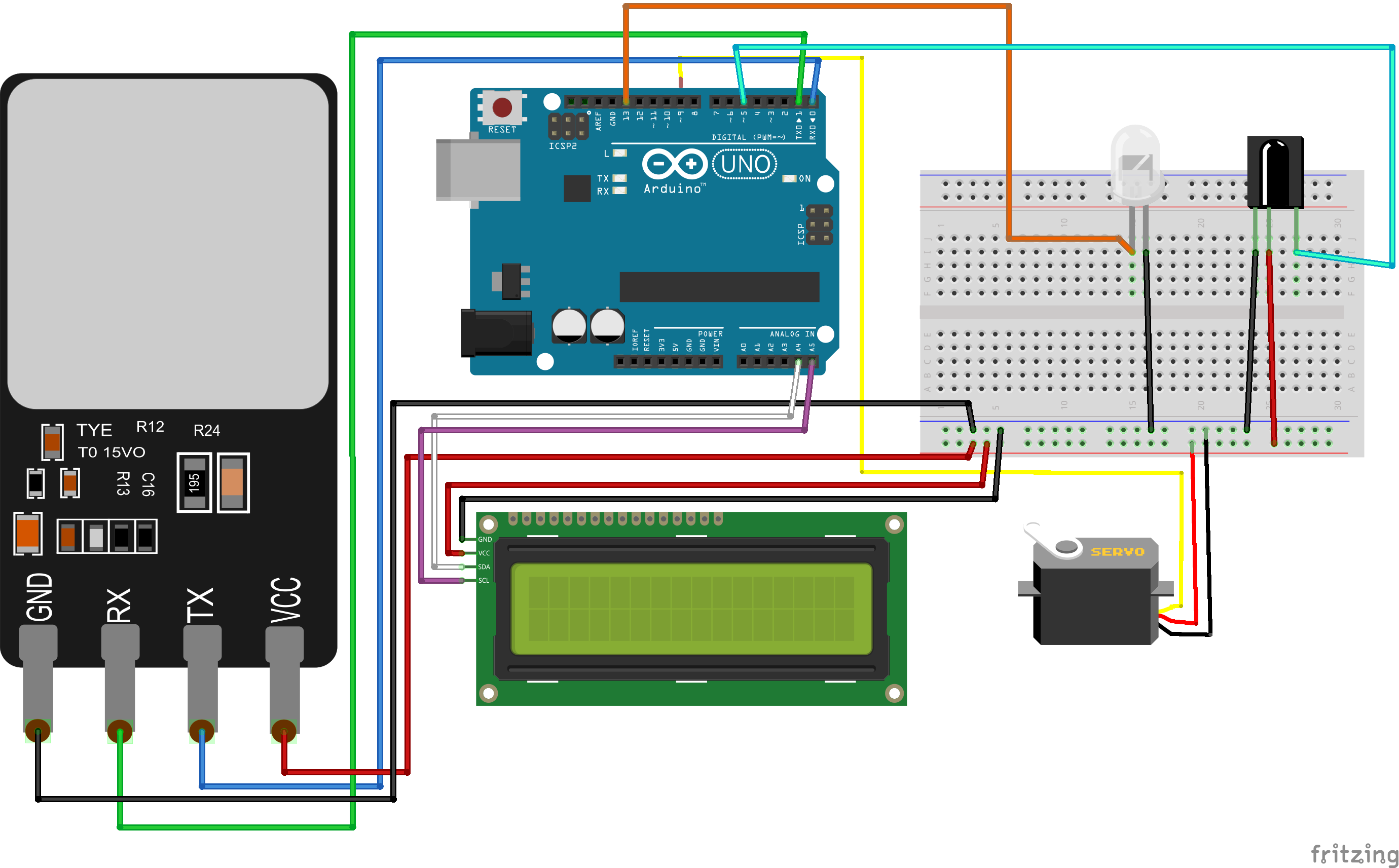 Presentiamo una cassaforte programmata con Arduino Uno con sblocco ad impronta digitale con l’ausilio del sensore “Adafruit Fingerprint Sensor” e con sblocco tramite codice di tre cifre inserito con telecomando e sensore IR. La cassaforte richiede l’impronta, riconosce il proprietario e si apre. Se il sensore non riconosce l’impronta tra quelle memorizzate, richiede la password di tre cifre che, se corretta, apre la cassaforte; se errata la cassaforte non si apre e ritorna a scannerizzare le impronte.